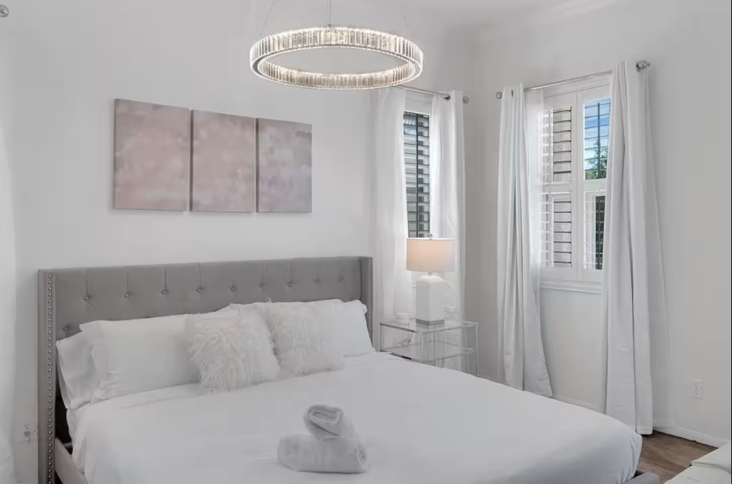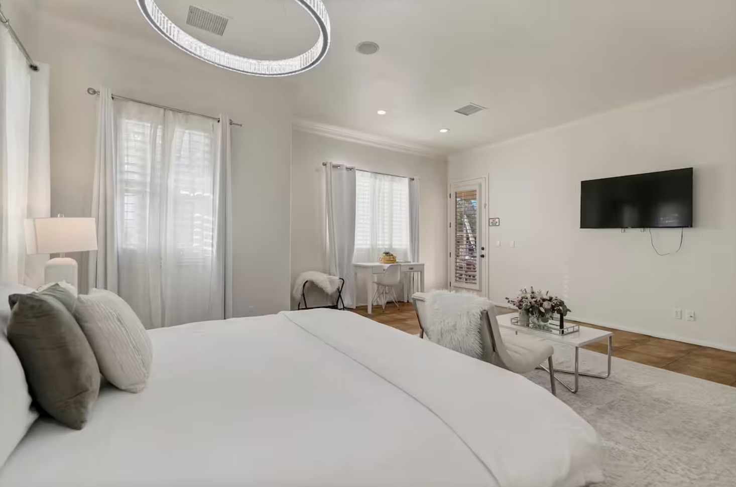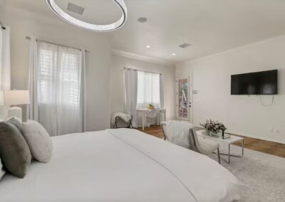 Book this spacious Master suite with a king bed, two air mattress beds, and a private bathroom. This is a large open space with several windows, giving the room an air of freshness and serenity. Ideal for a couple or a group of four seeking a large, private, and comfortable space to unwind and relax after a full day of yoga.