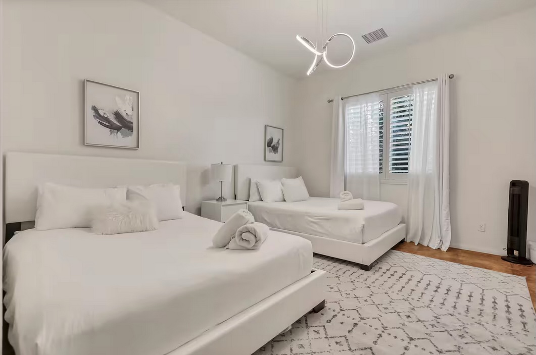 - Spacious, comfortable bedroom with two queenn beds